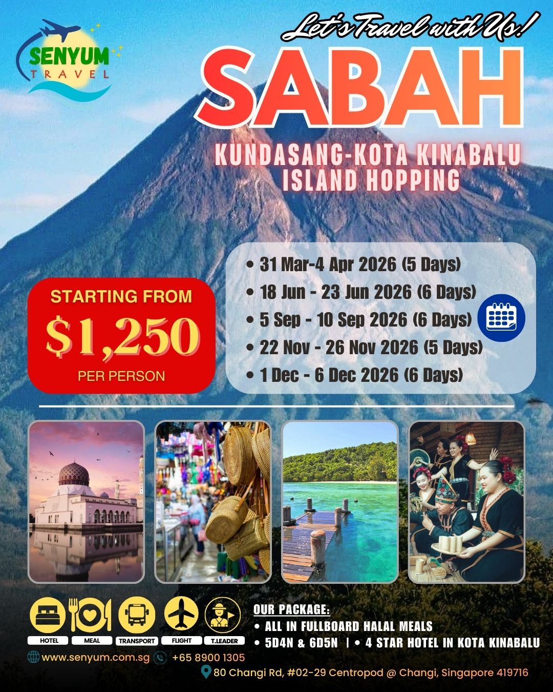 Highlights  :    Sabah (1 Nights Kundasang – 3 Nights Kota Kinabalu), Full Board Halal Meals